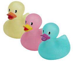 So… I was in Pier 1 Imports the other day and saw these really fun little rubber disco ducks that had a colored light inside that blinked on and off when you pressed on the duck.