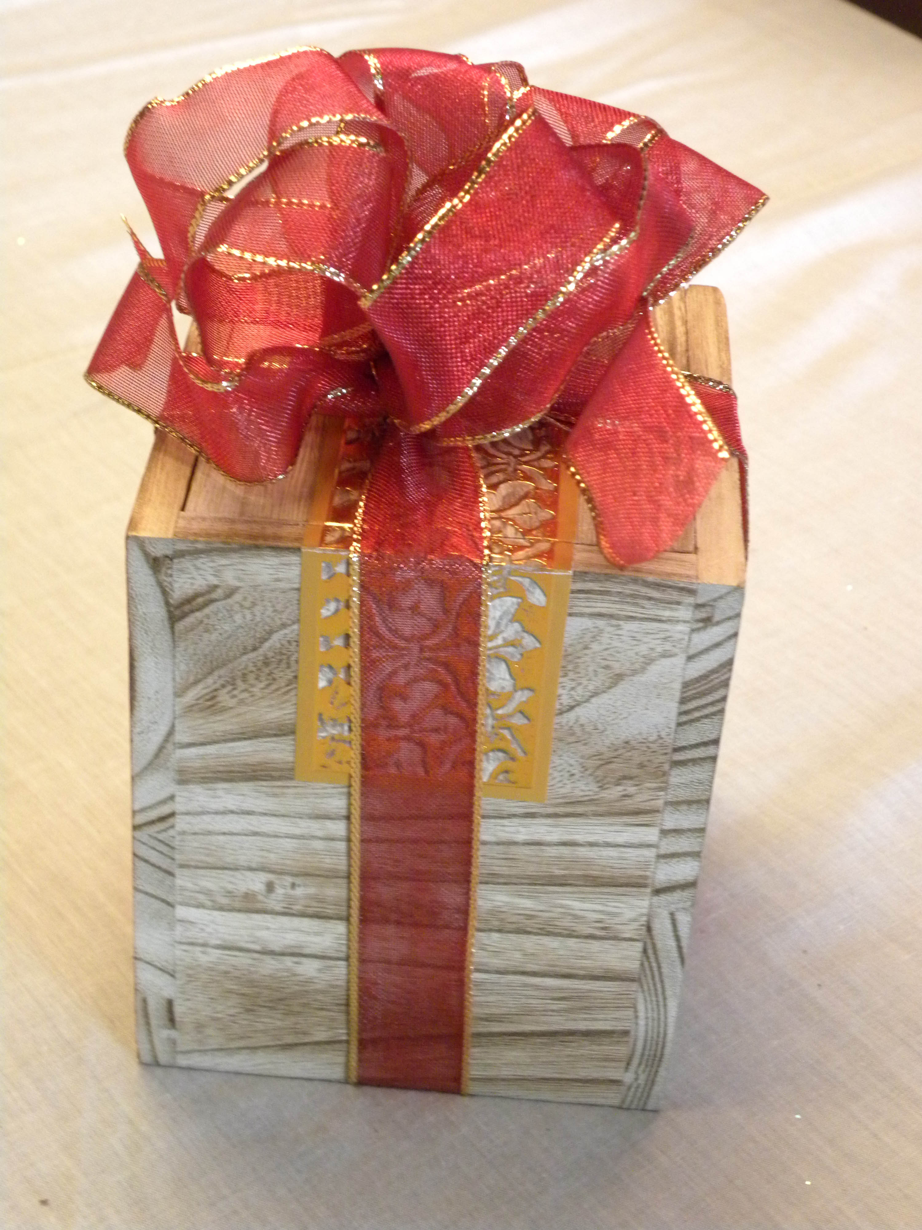 Wood recycled candle box with wired ribbon