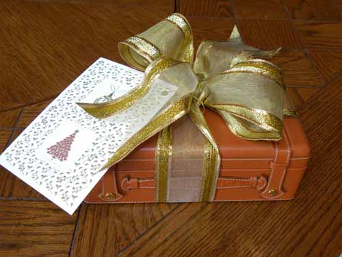 Greeting cards from this last holiday season make great, large, decorative gift tags. Just cut the front covers off the cards, punch a hole in the corner and use a bit of glittery elastic to tie them to the gift. They can usually be beautifully coordinated with the color of the bag, box or ribbon.