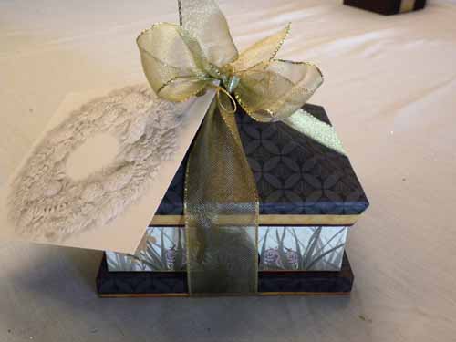 House shaped soap box with wired ribbon and greeting card gift tag