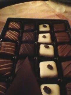I had the good, no GREAT, fortune to dine with friends at an amazing dinner table last week, the group filled with famous faces of many talents (who, WHO??? I’ll never tell). As a capper to the evening, we were tempted by a platter-full of handmade chocolates, promoted by our hostess as the product of a friend.
