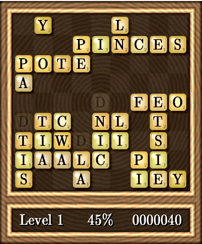 Click a letter to select it. Click a location within the grid to move the selected letter to that spot. The object is to form 4 letter words or bigger. Each time you do, the letters of that word are removed from the word game. The game is over when there is a letter in every spot on the board.