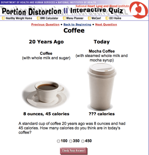 Look how far we have come 🙄 Click on the picture below and take this quiz… not only will you see the ballooning portions we now consider normal, but you’ll get a reality check on cashing in those added calories….