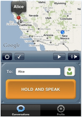 I chatted with my son as he plodded through a 9-hour drive the other day and I could see right where he was every time he spoke to me. I was even able to zoom in and see he was half a block off of the highway at a rest stop. Very cool. For the record… my son’s name isn’t Alice and I’m not in New Mexico.. this was just a screenshot from the HeyTell website 🙂 Click on either picture here for a demo of the application.