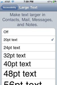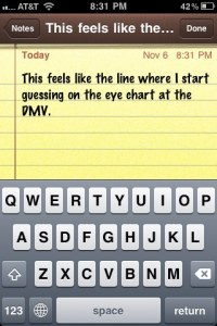 Some of the type is SOOOO teeny tiny… Texting, Notes and Contact entries are often too small for eyes of a certain age to see without whipping out the reading glasses.