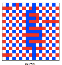 Simplicity can be MADDENING. Try to get your red line to connect side-to-side or top-to-bottom before the computer connects her blue line. I let her win 🙂