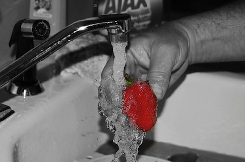 Strawberries, my friends, tested “out of the bag” at 1,500 bacteria count and 5,200 mold/yeast. AFTER a 20 second rinse in cold water, the count went UP to 2,300 bacteria and 12,000 mold/yeast!