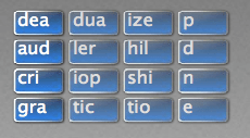 It looks simple enough….. as the clock runs, click on the portions of words from each column that will make a complete word. I will just say this… I found it a bit surprising.