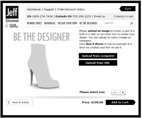 Have a dream shoe that is the toe of a Tory and the back of a Blahnik? Jeff Silverman will make it happen for you. Upload pictures, describe what you want, they send you 6 view photos of a mock up, and for about $125 and 3 WEEKS OR LESS, you have your one-of-a-kind. EVEN BETTER…. they put the shoe up for sale… and every time someone buys it, you get $15!! Get a collection going and they’ll give you your own store.
