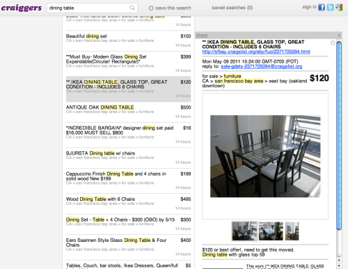 So along comes Craiggers, tidying up what the original lacks. Just go to Craiggers.com and search for the item, the category and the location, and Craiggers provides a MUCH better interface.