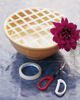 2. Make a scotch tape grid across a wide bowl to make a large, low flower arrangement: