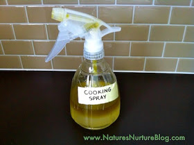 7. Homemade Cooking Spray: 1 part olive oil + 4-5 parts water, in a misting spray bottle