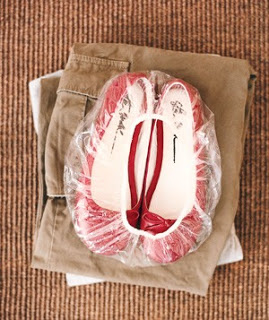 6. Collect all those hotel shower caps and use them to keep your shoes wrapped and safely away from your clothes when packing.